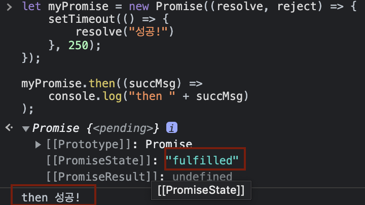 - 이행(fulfilled) : 연산이 성공적으로 완료 된 상태.
