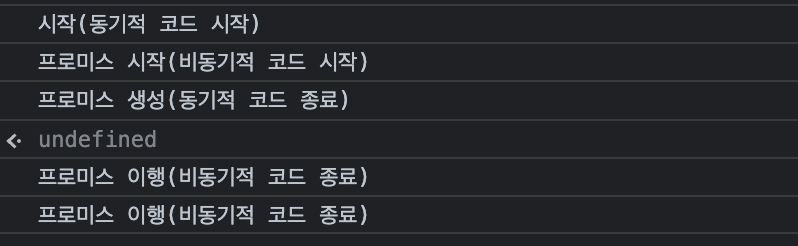 console.log('프로미스 생성(동기적 코드 종료)');