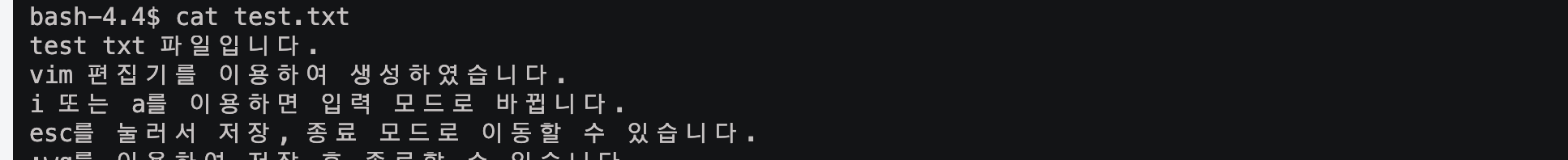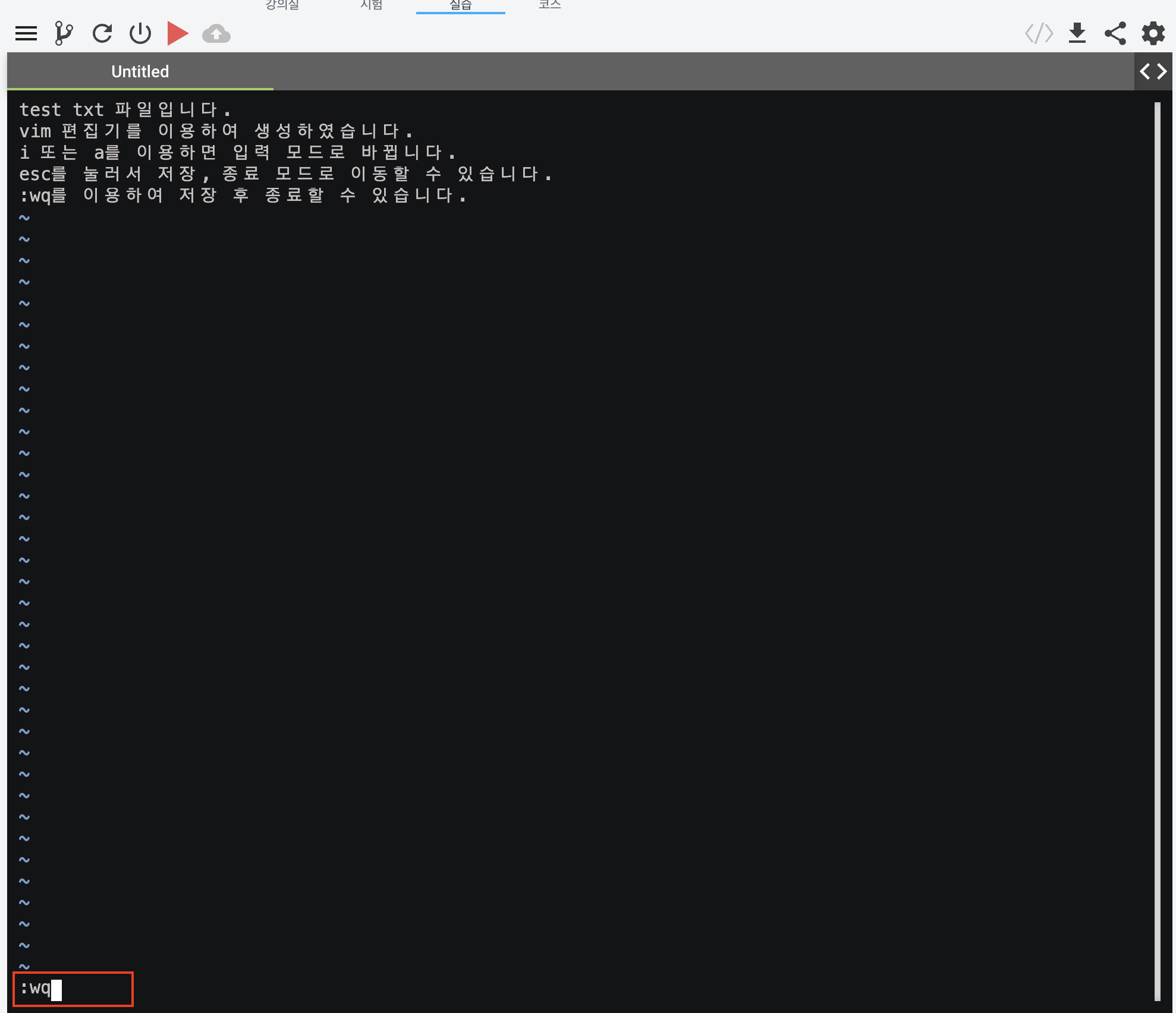 그리고 ' :wq ' 를 입력하면 저장 후 종료된다.
