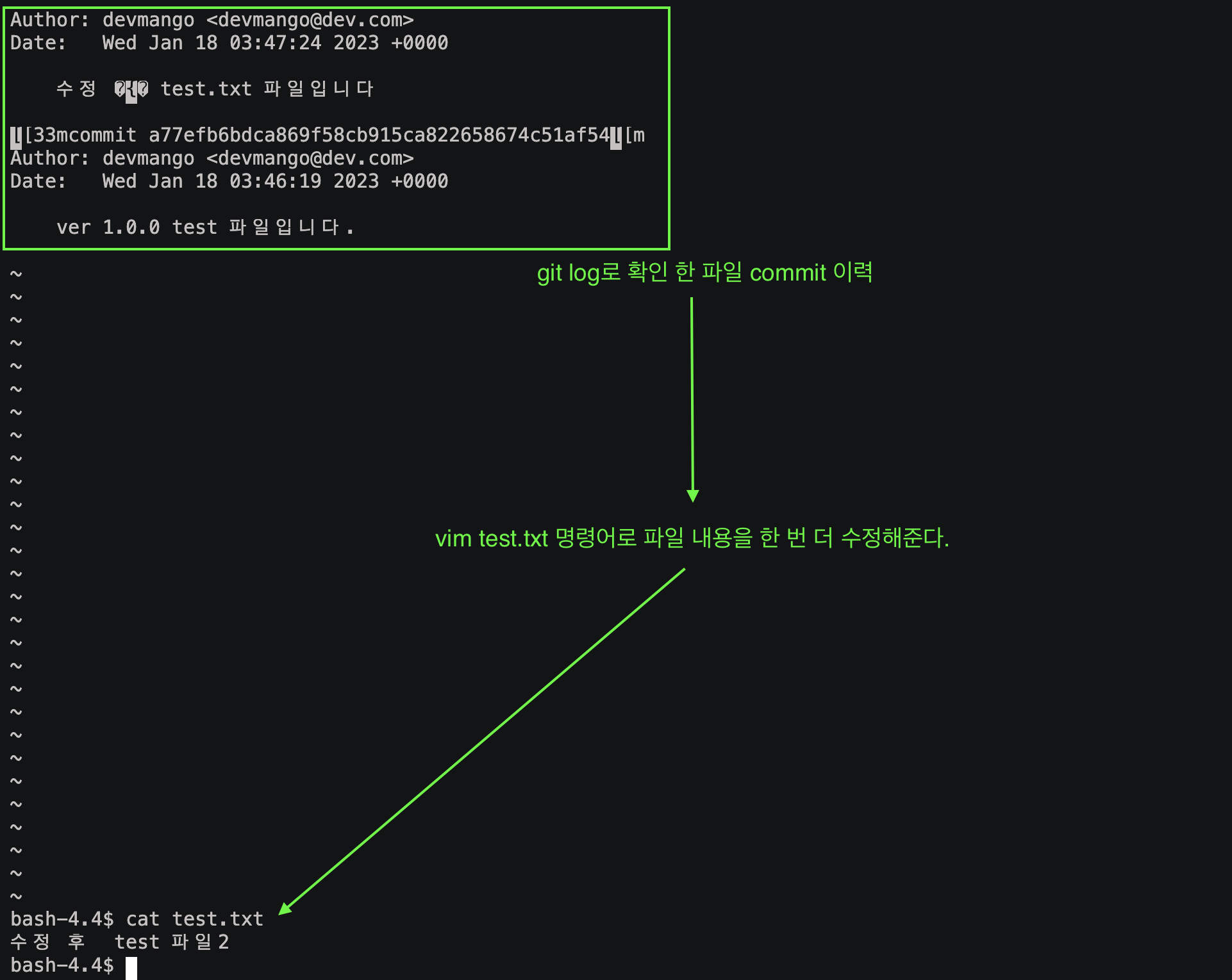 1) 테스트를 위해 test.txt 파일을 한 번 더 수정해준다.