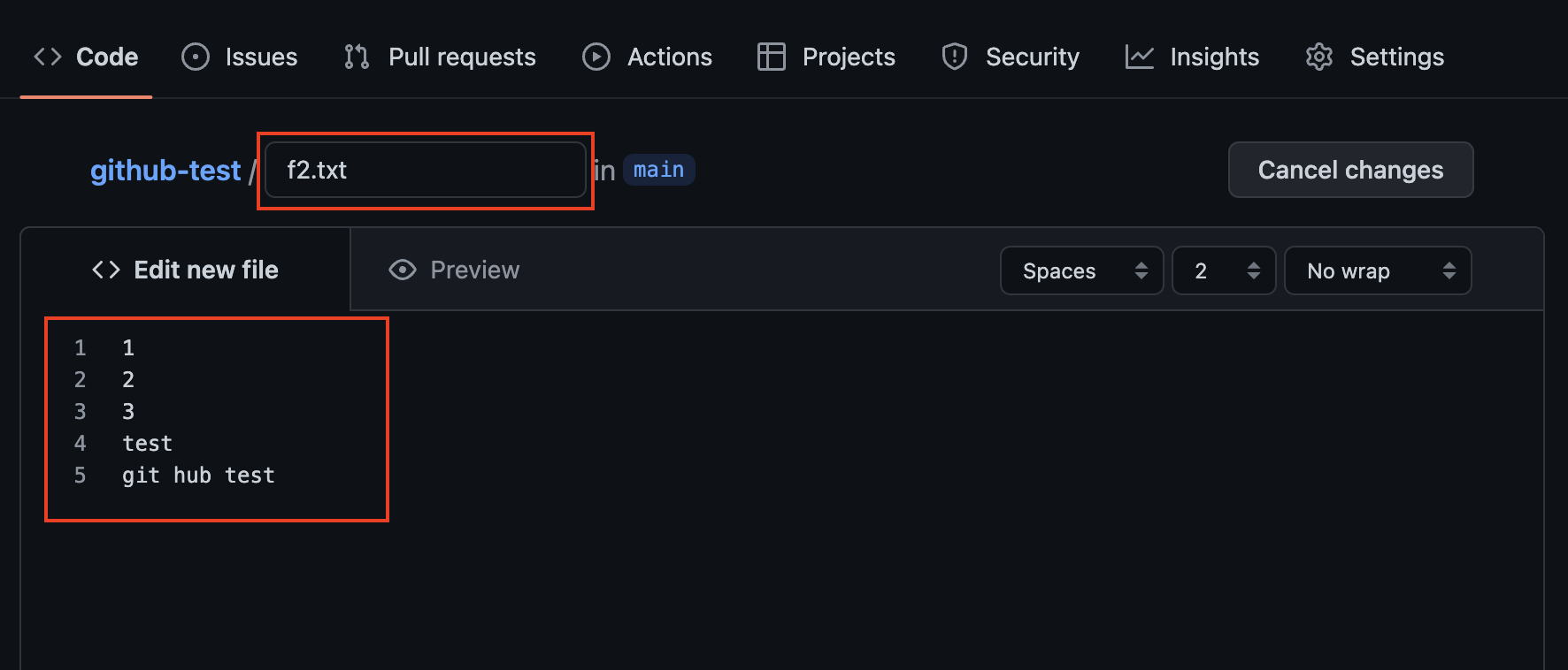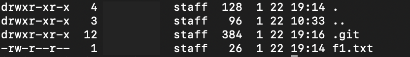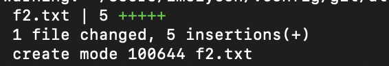 그리고, 깃허브 사이트에서 바로 f2.txt 파일을 새로 만들었다. 그러므로 loc-git 지역 저장소에는 아직 f2.txt 파일이 없다. 터미널 창에서 loc-git 디렉터리로 이동해서 내용을 확인한다.