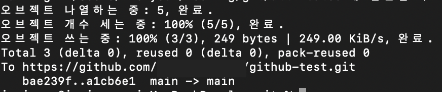 2) 아래와 같은 메세지가 보이면 push 가 정상적으로 완료된 것이다.