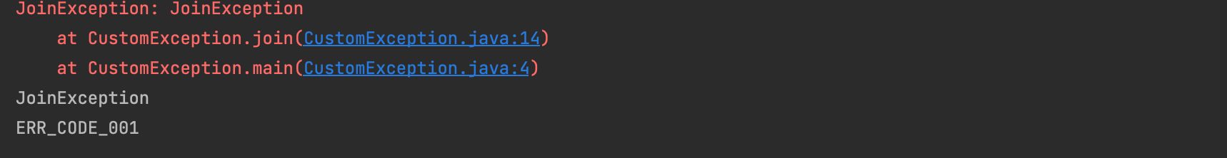 throw new JoinException("JoinException", "ERR_CODE_001");