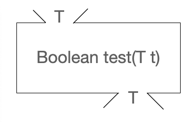 | Predicate<T> | T -> boolean test(T t) -> boolean | 조건식을 표현하는데 사용됨. 매개변수는 하나, 반환 타입은 boolean |