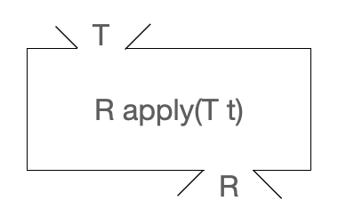 | Function<T, R> | T -> R apply(T t) -> R | 일반적인 함수. 하나의 매개변수를 받아서 결과를 반환 |