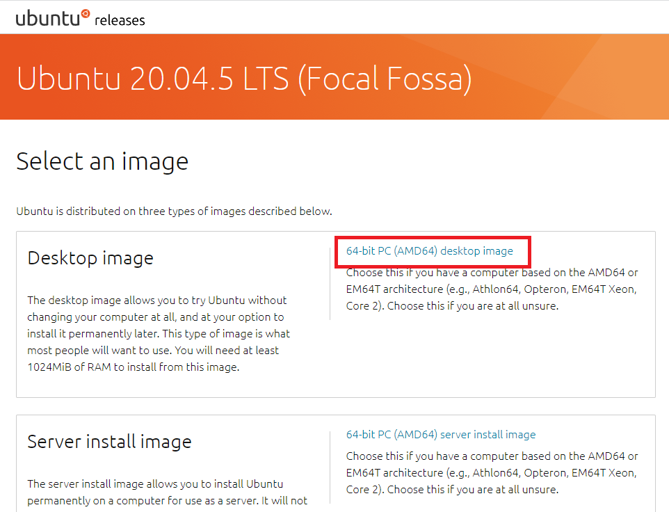 1. https://releases.ubuntu.com/focal/ (구버전)에서 desktop image를 다운받는다.