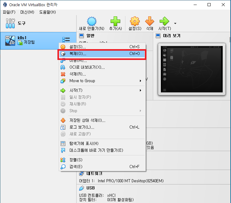 (단, 쿠버네티스 마스터를 설치하기 전에 미리 복제해서 만들어야 한다.)