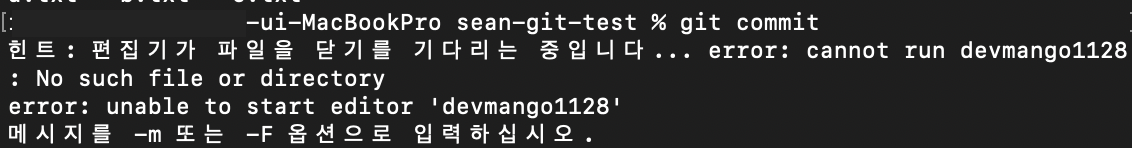 git commit을 하니 위와 같은 메세지가 뜨면서 편집기가 열리지 않는다.