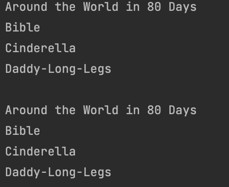 bookShelf.appendBook(new Book("Around the World in 80 Days"));