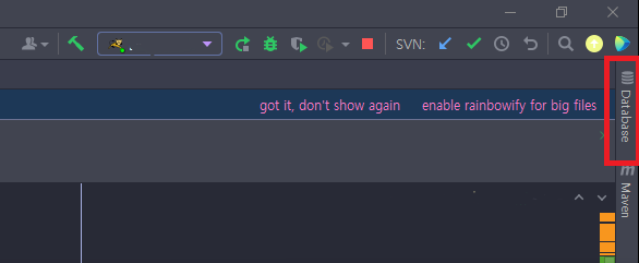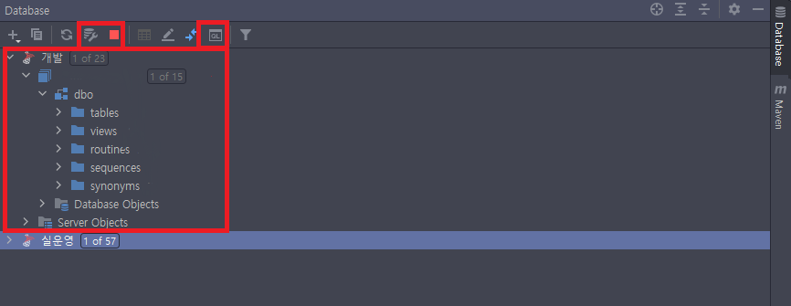 4. 연결된 후 인텔리제이 내에서 테이블 검색 및 프로시저 검색도 가능하고, 상단 메뉴에서 설정 변경을 할 수 있다.