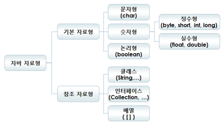 - 대표적으로 클래스 타입(class type), 인터페이스 타입(interface type), 배열 타입(array type), 열거 타입(enum type) 등이 있다.