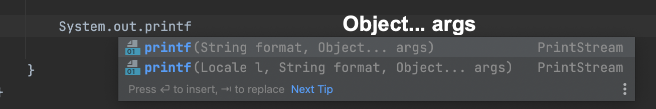 호출하는 쪽에서 인자 개수를 정하지 않고 사용할 수 있는 메서드가 몇 가지 존재한다.