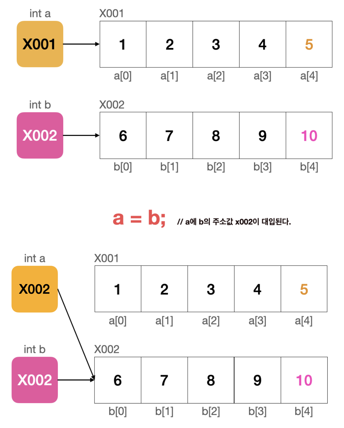 a = b; //같은 주소값을 가진다.