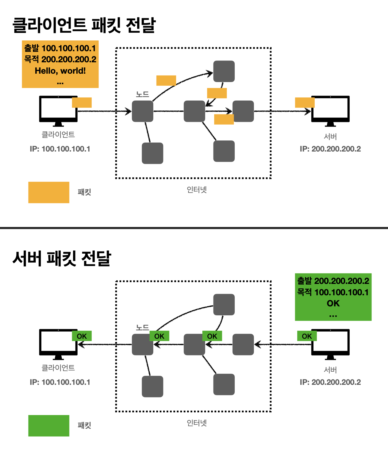 (패킷은 패키지와 버킷이 합쳐친 단어라고 생각하면 된다. 포장된 덩어리같은 개념?)