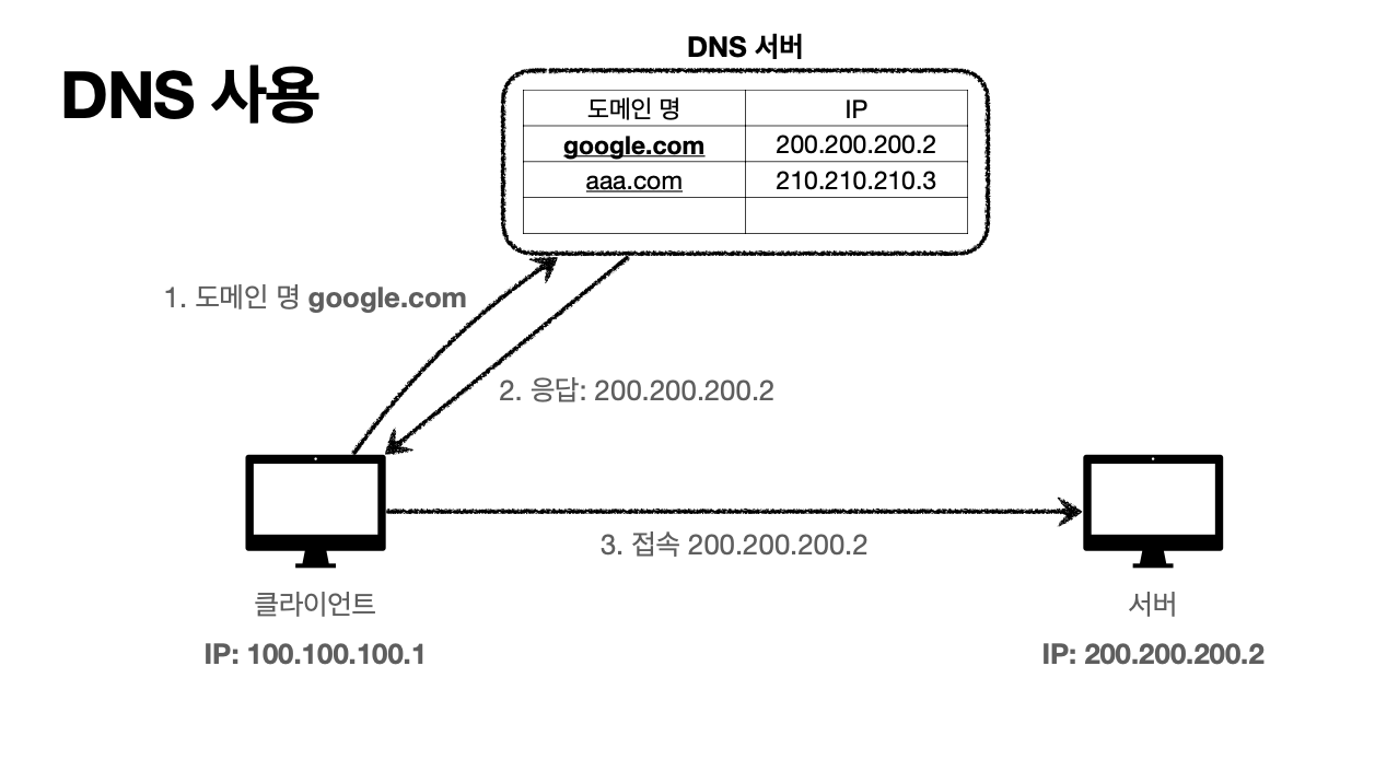 우리가 도메인명을 입력하면 해당 도메인을 IP주소로 변환 시켜준다.