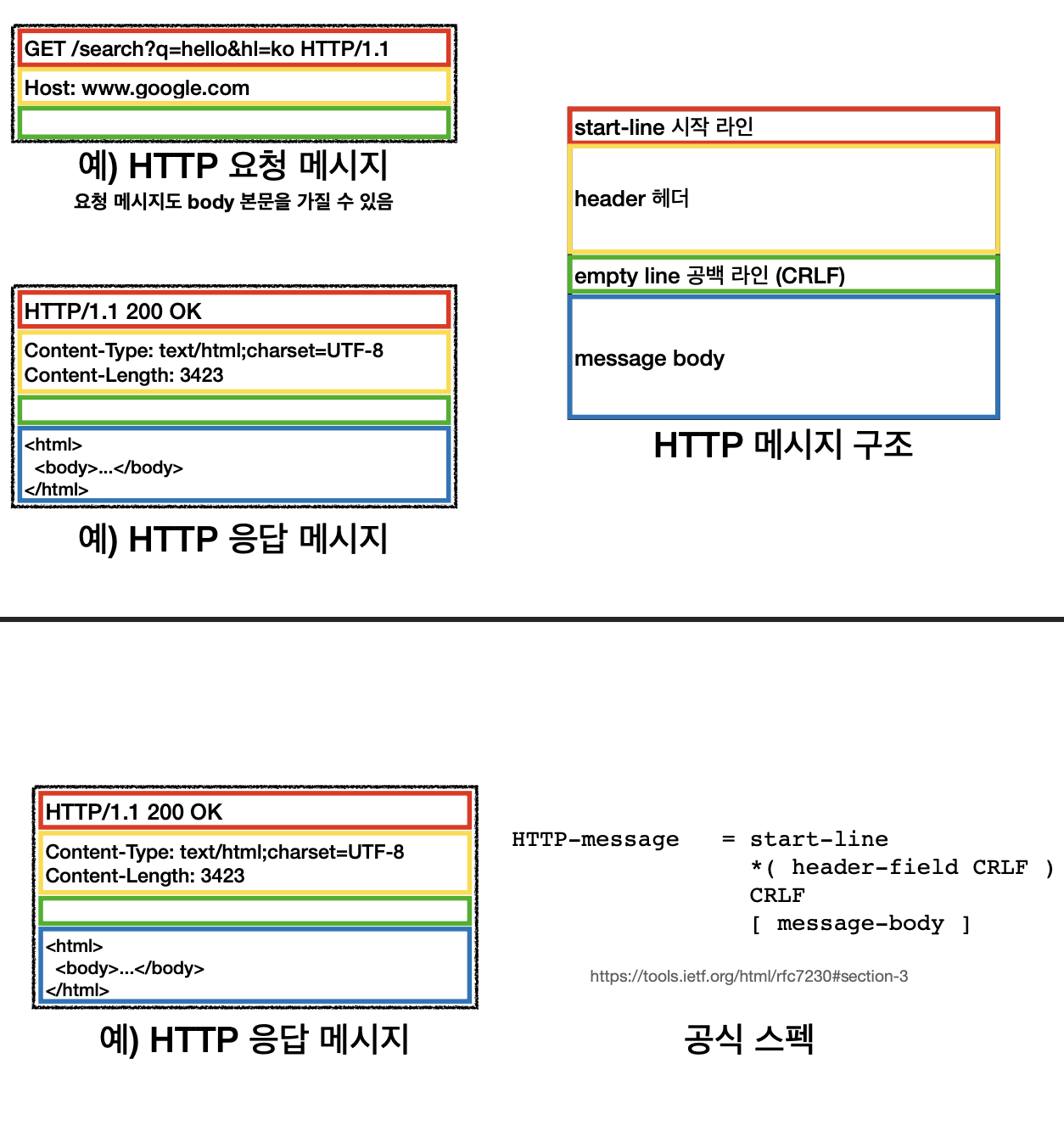 request-line = method SP(공백) request-target SP HTTP-version CRLF(엔터)