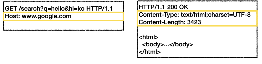 | GET /search?q=hello&hl=ko HTTP/1.1 Host:www.google.com |