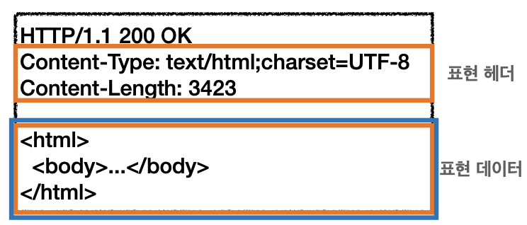 - 표현은 요청이나 응답에서 전달할 실제 데이터