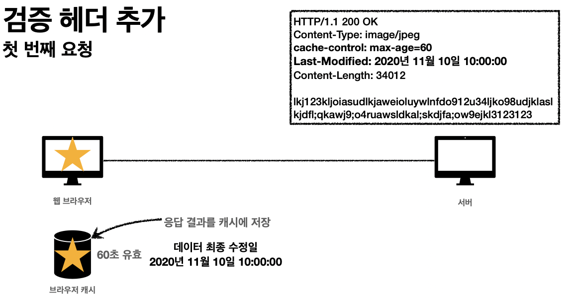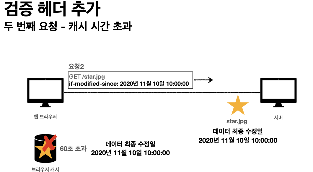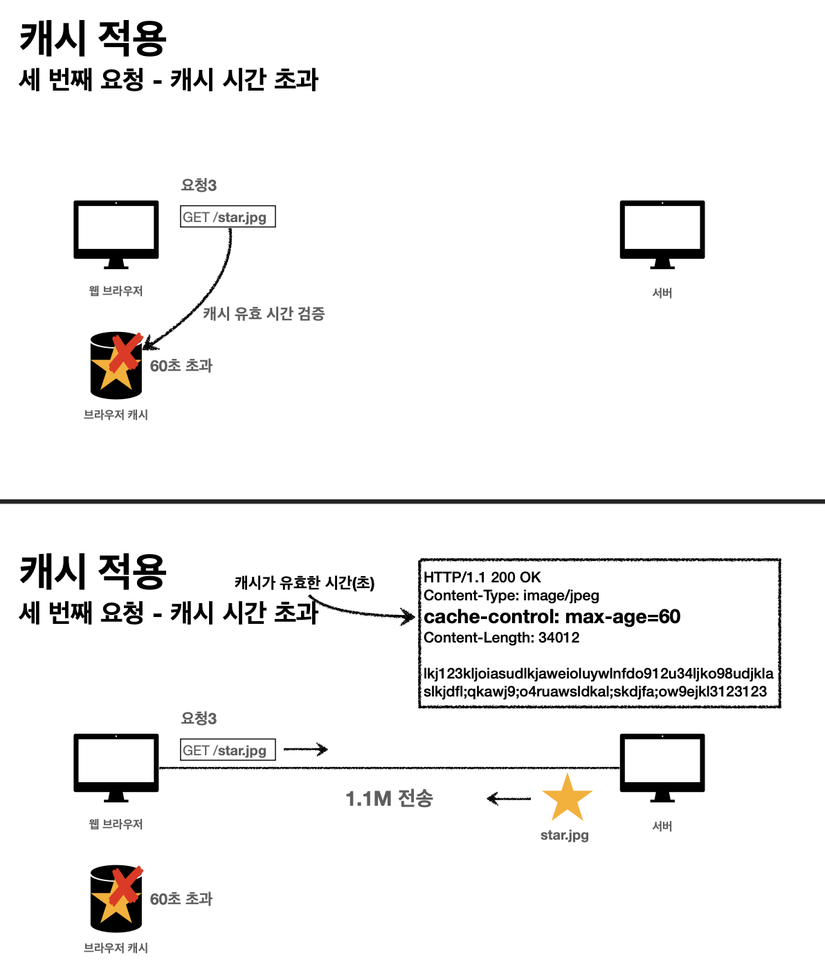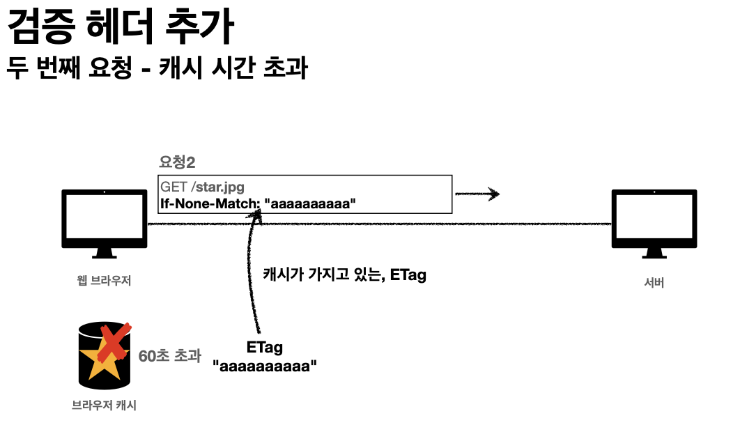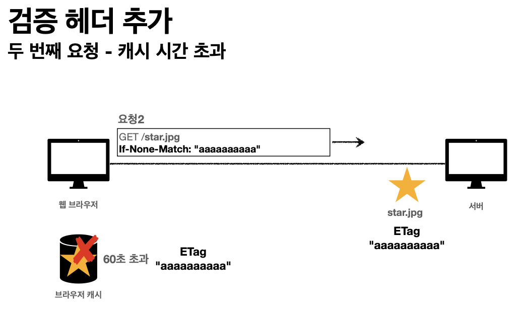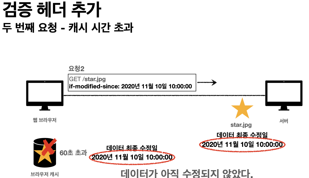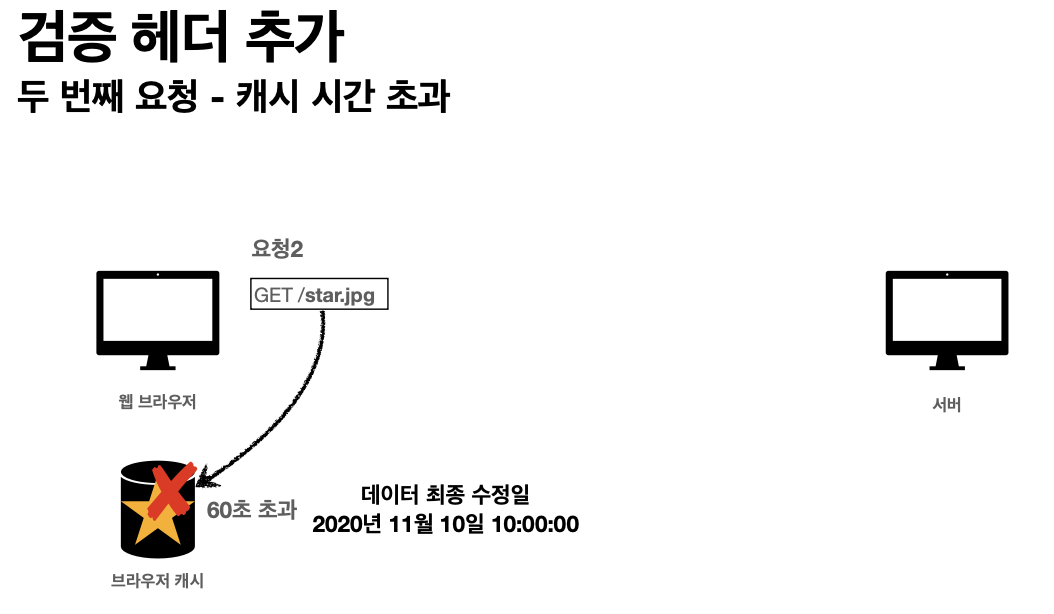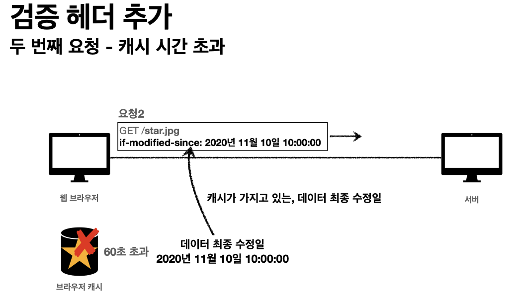 - 캐시 유효 시간이 초과해서 서버에 다시 요청하면 다음 두 가지 상황이 나타난다.