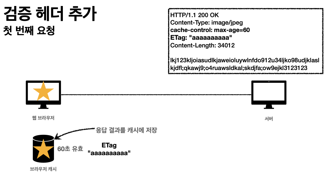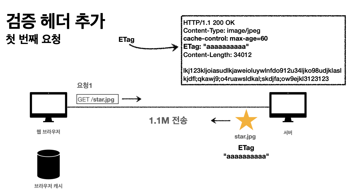 - 캐시용 데이터에 임의의 고유한 버전 이름을 달아줌. ex.ETag: v1.0, ETag : a2jiodwjekskd3