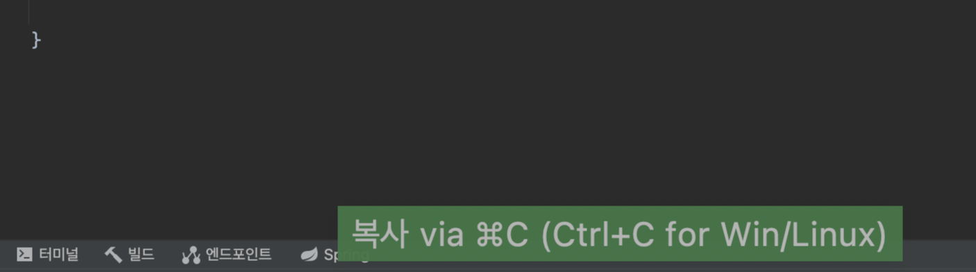 이런식으로 인텔리제이 화면 중앙 하단에 보여지는데 윈도우 키도 같이 보여줘서 굿!