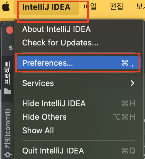 3. 인텔리제이 IDEA > Prefereces... 메뉴 선택