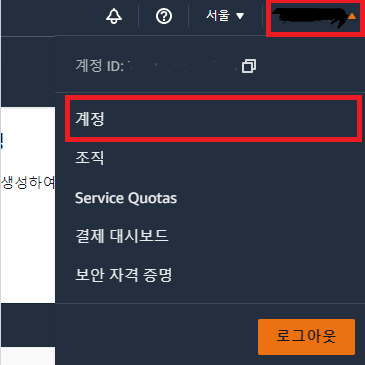1. 우측 상단에 내 계정 ID를 클릭한다.